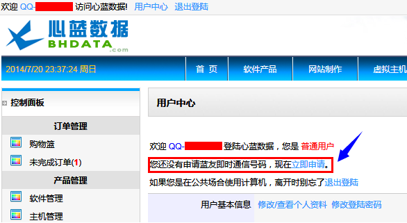 1、首先我们需要申请蓝友的即时通信的号码,点击立即申请。