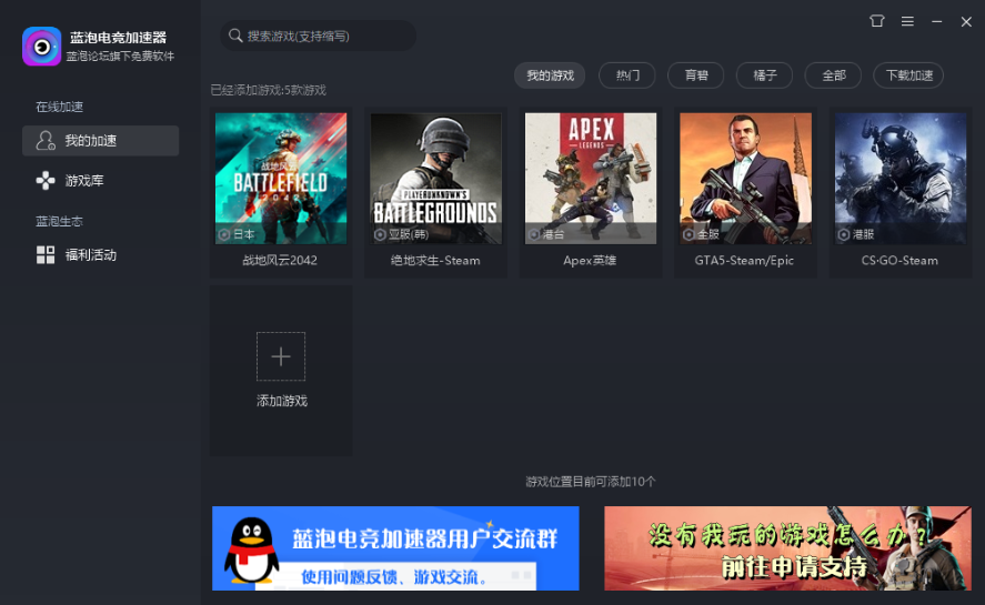 提供了海量的优质游戏可以在其中进行加速,各种最新的网游都支持进行加速的。