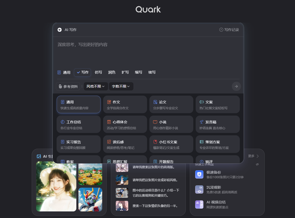 夸克浏览器官方版是一款大模型ai支持的浏览器,快速加载页面,智能搜索信息。支持多设备同步书签,拦截广告提升体验。内置隐私模式,无痕浏览保护数据安全。可自定义界面,操作简便。免费使用,扩展功能需付费。官网下载,适用于电脑与手机,满足日常上网需求。