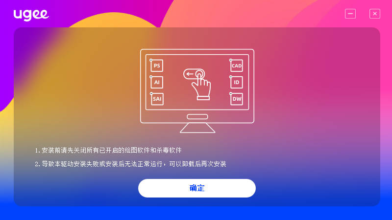 1、在本站下载友基绘影EX08数位板驱动,打开安装程序,点击确定。