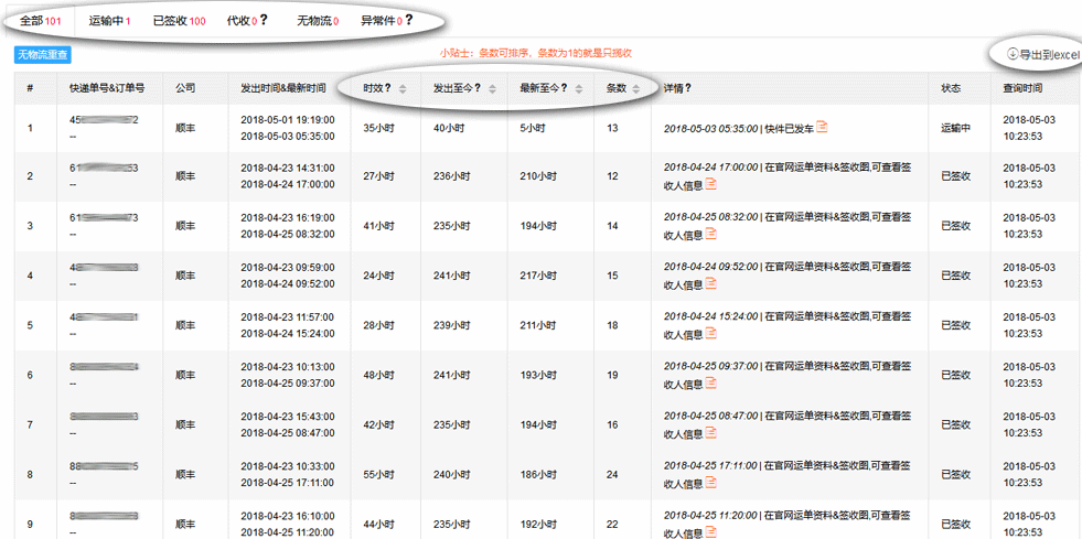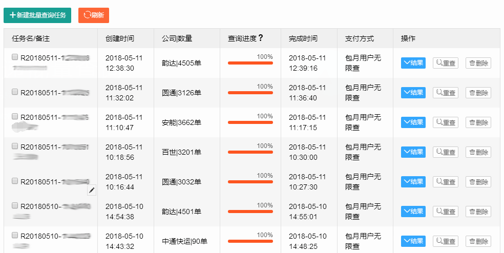1、支持52家快递企业单号批量处理,平均查询速度达5单/秒。