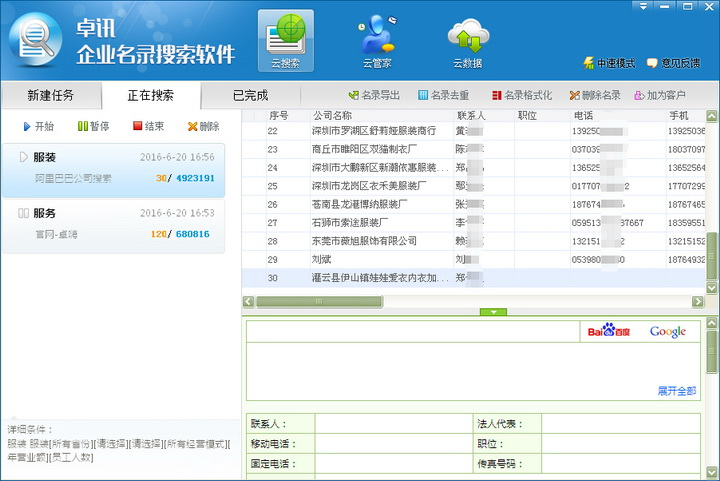 3、接着软件就会进行搜索,将对应的企业信息都显示出来。
