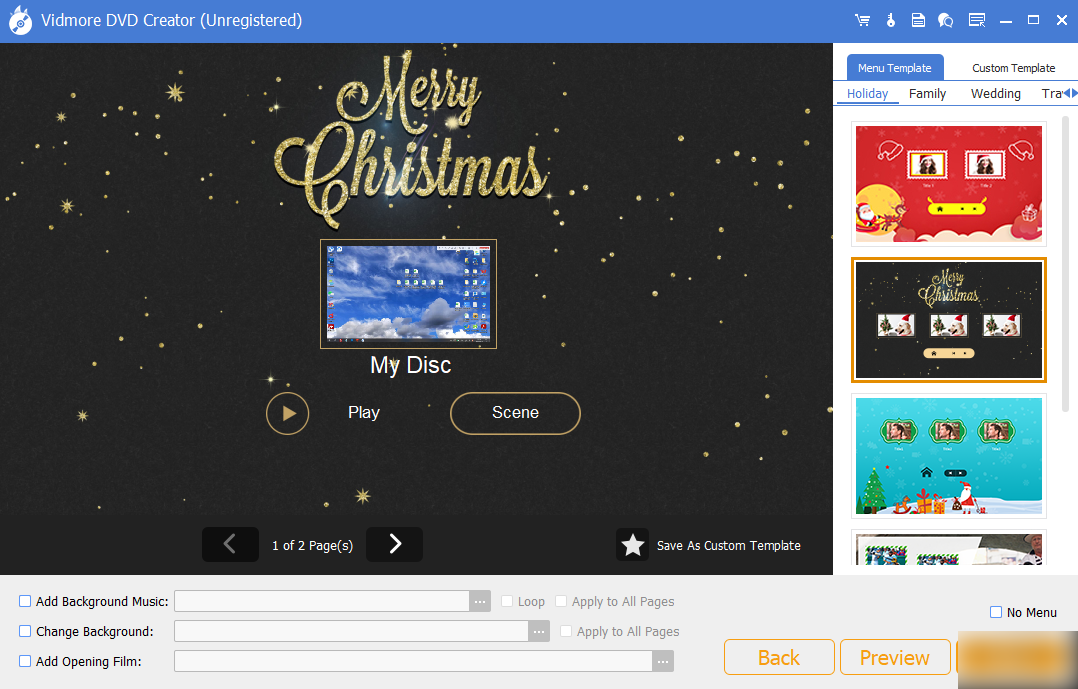 内置多款中文DVD菜单模板,预置节日、影视等主题,一键套用无需额外设计。
