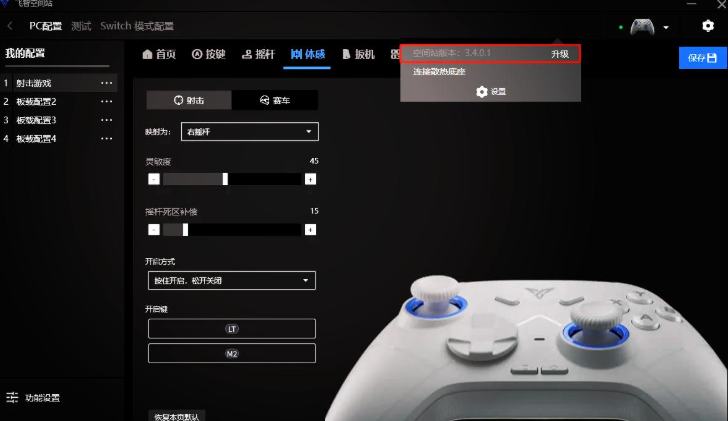 2、 当手柄被识别后,点击右上方的相关选项,检查是否有更新。