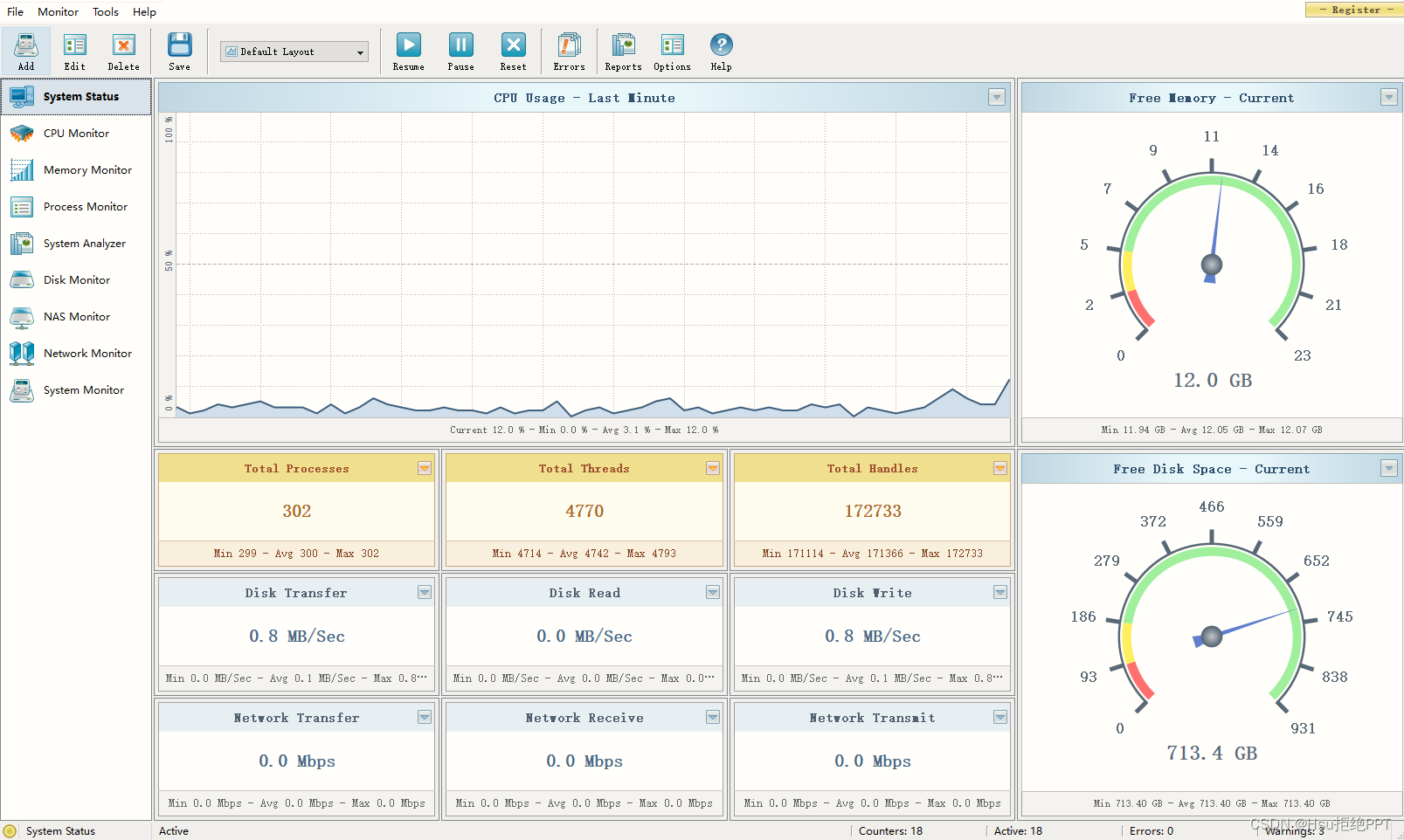 支持温度、网络流量、进程资源等50+参数监控,硬件信息无死角,隐患早发现。