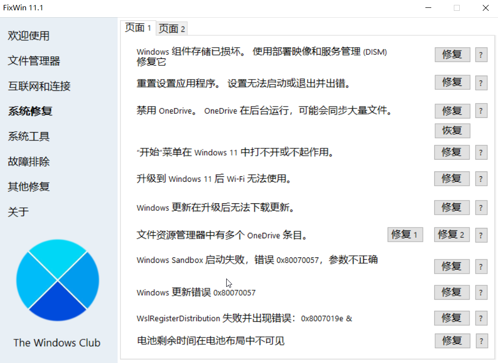 fixwin安装包是一款非常好用的电脑系统修复工具,如果用户的windows系统出现了运行问题导致出现各种卡顿以及闪退的情况就可以利用这款软件来成功的进行修复了,让用户能够在电脑当中沉浸式的进行选择使用。