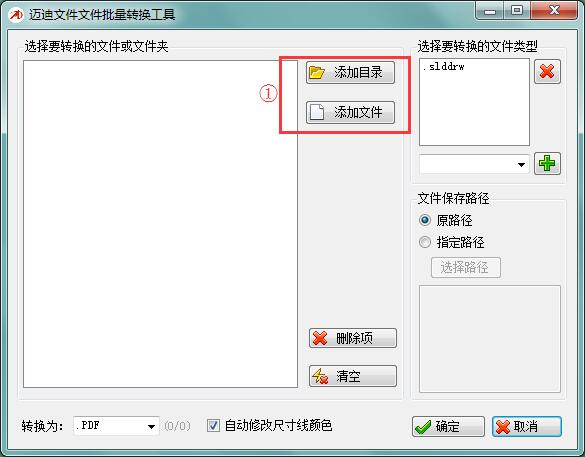 1、在本站下载迈迪文件批量转换工具,打开软件,点击添加目录或添加文件,选择要转换的文件。
