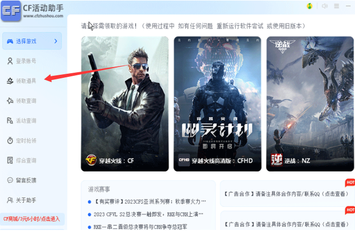 3、选择游戏:可使用软件对cf系列的游戏进行领取,目前官方还添加了逆战游戏的道具领取。