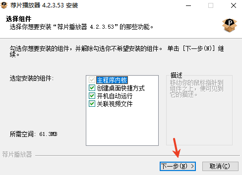 1、首先打开软件的安装包,然后选择安装的组件点击下一步;