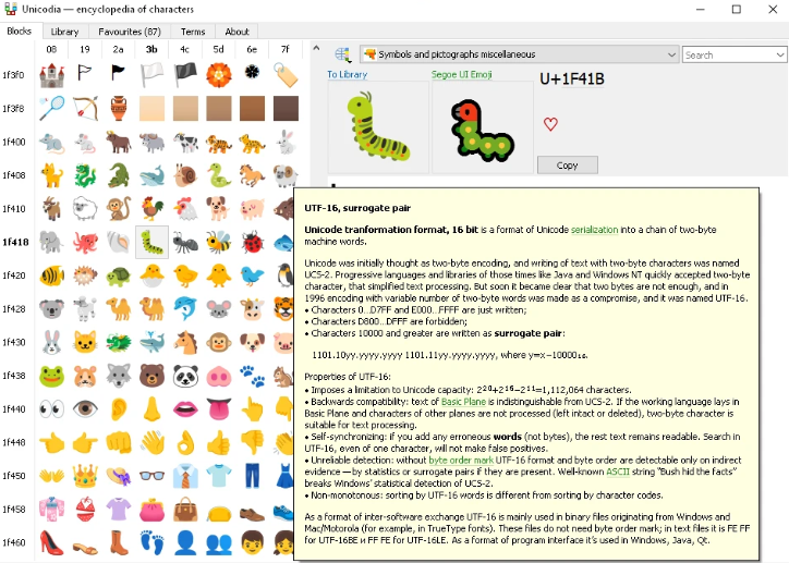 Unicodia是一款肥肠粉好用的电脑字符映射工具,这款软件提供了非常丰富的功能能够帮助用户在电脑当中进行各种内容的复制粘贴等,同时还可以再软件当中快速地找到指定的字符进行使用,使得用户的文本编辑更加方便。