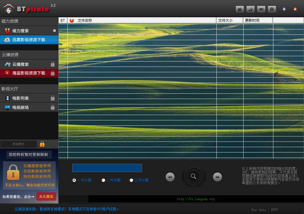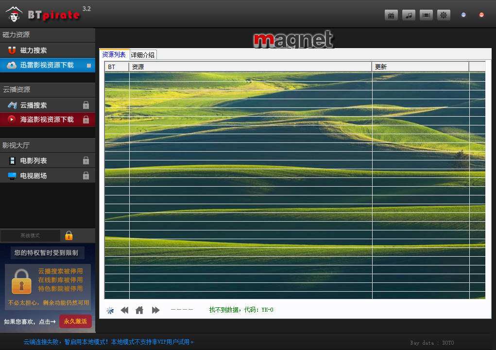 BT海盗是一款全中文的免费影视搜索工具,采用深海爬虫和云播下载技术,通过API同步云端暗网数据,不仅能搜索磁力网络,还能找到在线播放资源和二次封装的VIP点播内容,支持无广告在线点播,为用户提供纯粹简单的资源下载方式。
