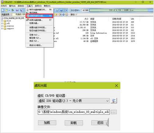 3、此时我们就可以将系统加载到虚拟光驱中了。
