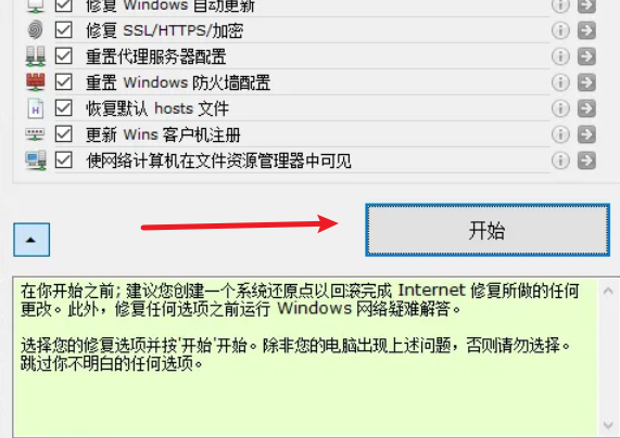 2、随后我们根据使用的需要来勾选对应的选择点击开始进行修复。