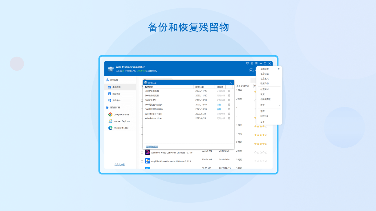 Wise Program Uninstaller作为专业的卸载工具,其核心竞争力在于通过精准残留清理与极简操作设计,构建了覆盖常规场景与顽固程序的完整卸载方案,重新定义了Windows程序卸载的效率与安全性,将流氓软件彻底删除。