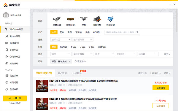 山火租号是一个提供游戏账号租借服务的平台。用户可通过该平台临时租用他人的游戏账号,按时间段付费使用,无需自行购买或长期培养账号。平台提供多种游戏账号选择,操作简便,适合想体验不同游戏或高级账号的玩家,满足短期需求,降低游戏成本。