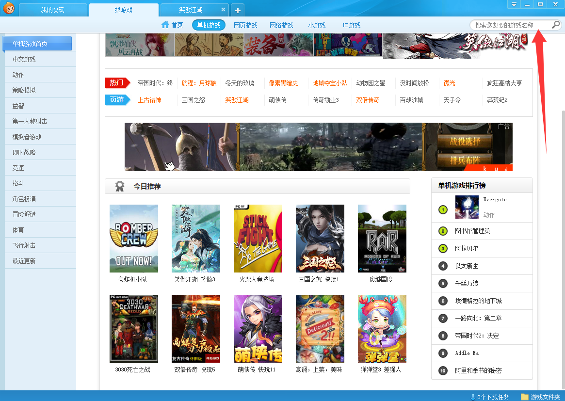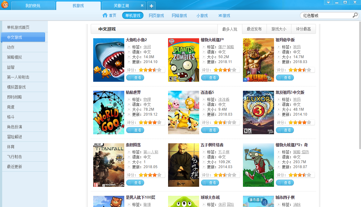 快玩游戏盒曾经的游戏当中提供了非常丰富的游戏可以让玩家们及时的进行选择游玩,无论是网游还是单机游戏都可以在这里找到然后将其进行下载进行游戏的游玩,对于喜欢玩游戏的玩家们来说还是非常值得推荐的。