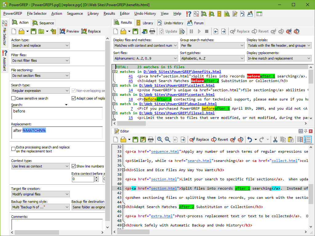 PowerGREP汉化版是一款功能非常实用的编译处理软件,这款软件当中提供了非常丰富的功能能够帮助用户来进行编辑使用,使得用户可以将各种电脑当中的文件都可以依次的进行处理,深受用户的喜欢,非常值得推荐。