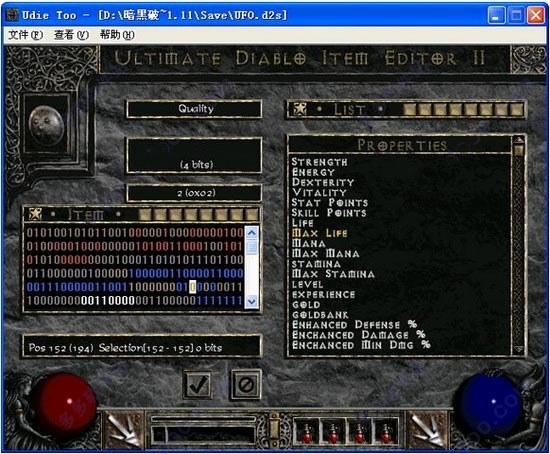 udietoo是一款专为暗黑破坏神2设计的深度定制型单机游戏修改器,界面与游戏内UI高度同步,玩家可直接点击角色属性、技能等级、装备数值进行修改,无需记忆复杂指令,还会提供技能代码对照表,玩家可手动输入代码实现特殊效果。