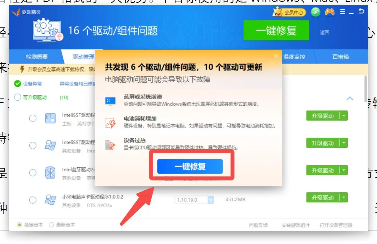 4、驱动冲突诊断:检测驱动版本冲突,提供一键修复方案,顺利解决问题。