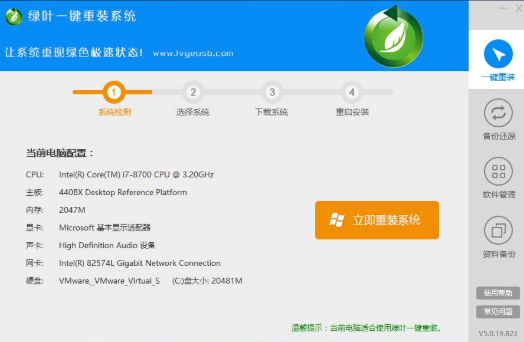 1、首先我们打开软件,选择一键重装,选择立即重装系统。