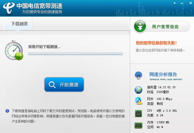 电信宽带测速器是一款非常专业的网络测速工具,这款软件会实时的帮助用户来检测自己的电脑网速,使得能够深度化的了解到自己的电脑网速情况,根据用户的需求在软件当中及时的进行使用,操作非常的简单。