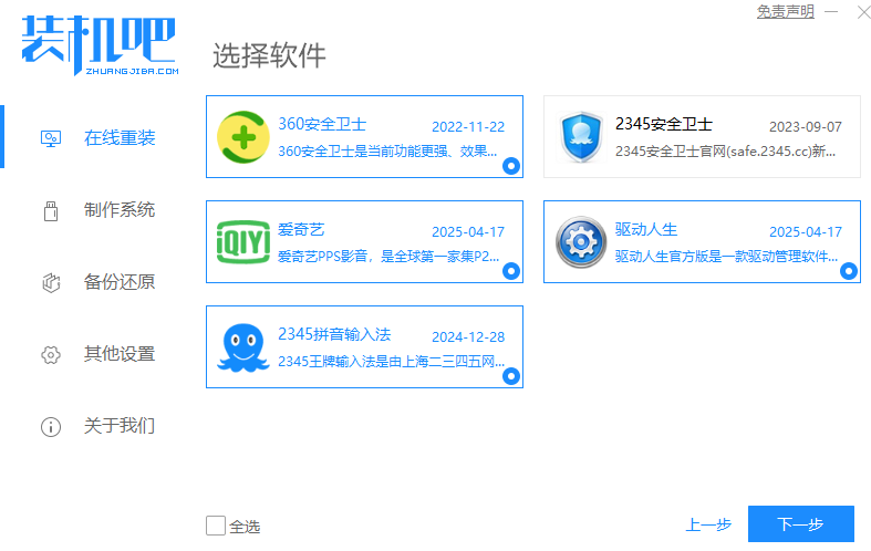 装机吧一键重装系统是一款功能丰富的系统重装软件,软件能帮助用户在线重装系统。且用户还能使用软件来制作系统,无论是格式化U盘还是升级启动盘都全面支持。此外还提供许多系统相关的功能,满足使用的需求。