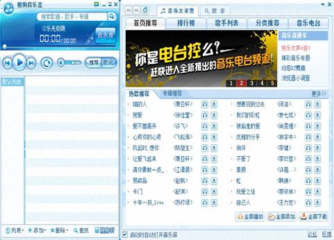 内置音乐电台分类,用户可订阅在线歌单并同步至移动设备。