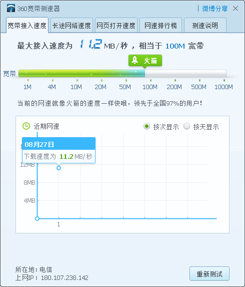360网速测试器独立版是一款非常优质的网速测试软件,可以帮助用户轻松的测试自己的网速,可以更好的去进行使用和操作,使用起来非常的方便,可以满足在不同情况下的测试的需要。