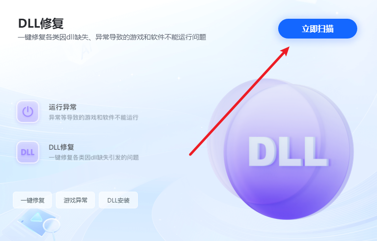 2、接着我们就可以在右侧找到dll修复的扫描按钮,点击进行扫描。