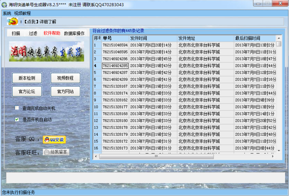 4、详细显示:进行扫描后软件会将快递的单号和发件时间等信息都显示出来,让用户了解查看。