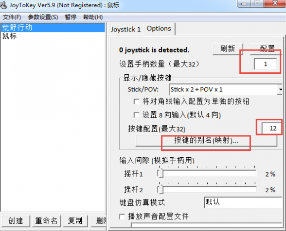 1、首先我们需要插入手柄,打开软件,新建一个配置文件。