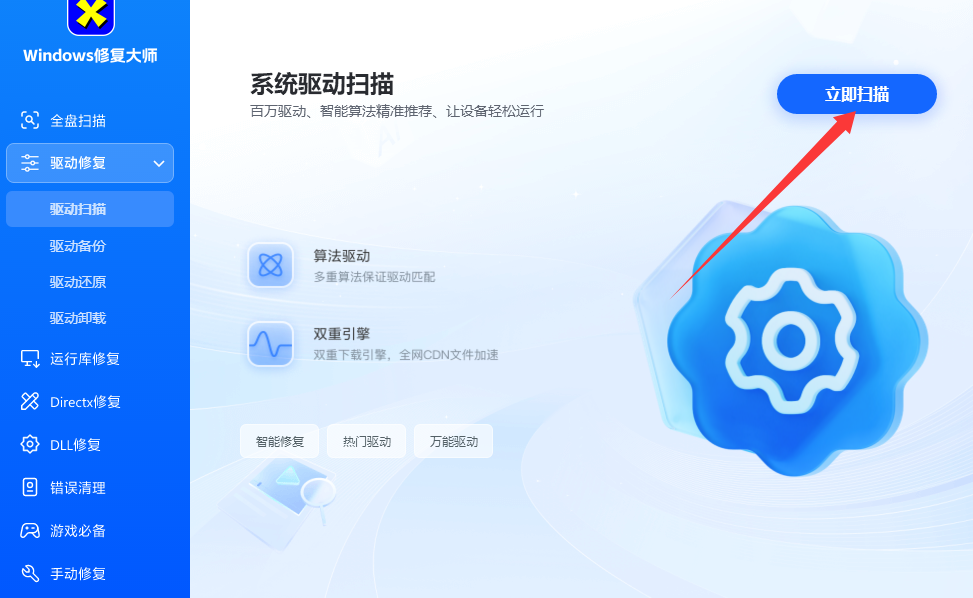 1、进入软件之后点击左下角的驱动扫描。