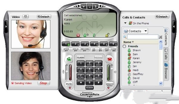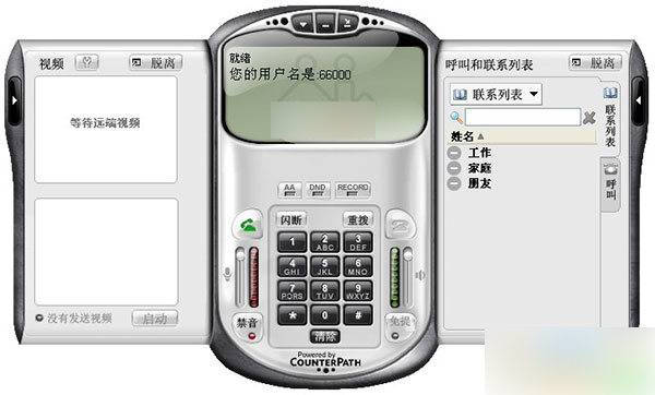 2、中间是拨号盘,左侧是远端视频,右侧是呼叫和联系列表。