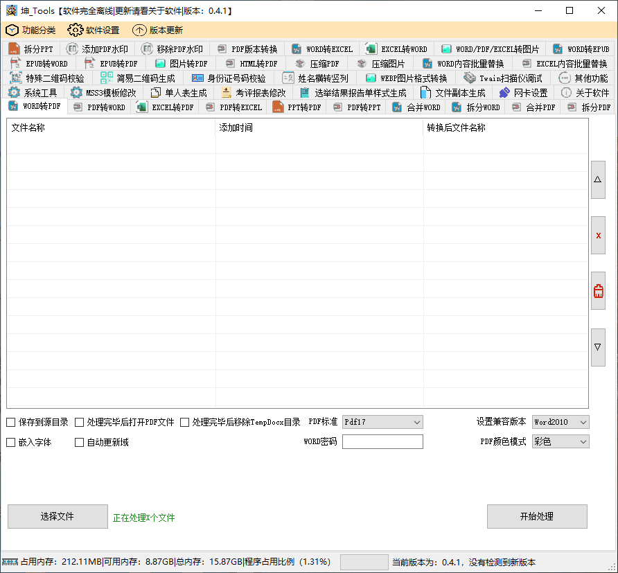 kuntools正式版v04是一个轻量化多功能集成工具,尤其在文档处理方面十分专业,集成了多个文档工具,可以在线转换文件格式、编辑办公文档、添加水印等等,此外还有系统优化和网卡设置工具,全方位满足用户的使用需求。