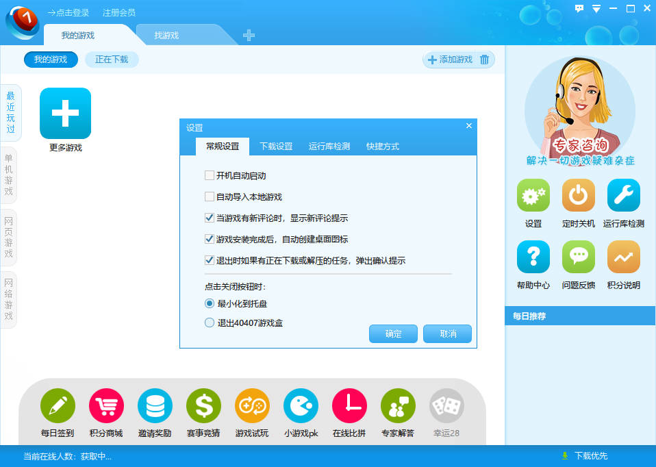 集成了硬件环境检测运行库安装等实用辅助功能,帮助玩家解决游戏环境问题。