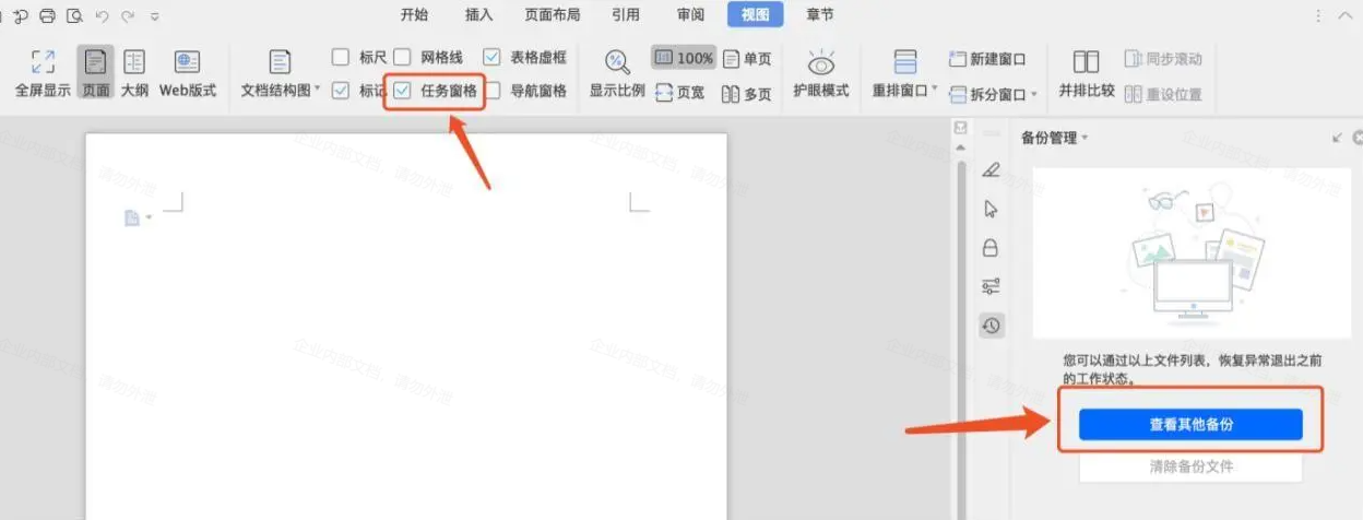 1、点击视图-任务窗格-查看其他备份。