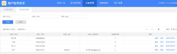 3、之后在商户租号助手中选择合租管理就能够查看自己的账号了。