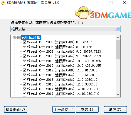 软件会自动推荐一些比较热门的运行库组件然后提供给玩家们进行选中后将其安装的。