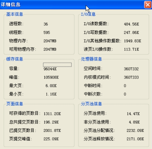 1、首先我们打开软件,可以看到cpu和内存的使用信息。