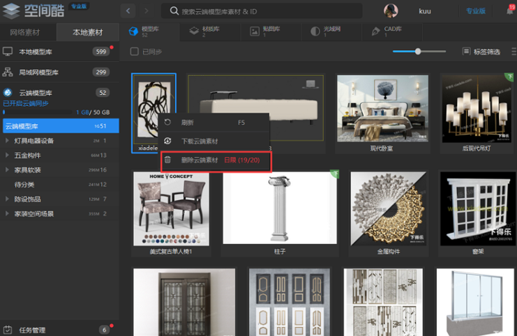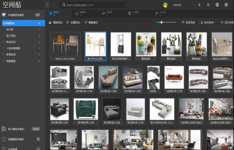 空间酷模型是一款功能非常强大的素材工具,软件当中提供了非常丰富的云端素材能够让用户在自己的电脑当中进行使用,这样就可以更加便捷化的对其进行管理以及套用,可以在多种不同场景当中能够使用其中的素材。