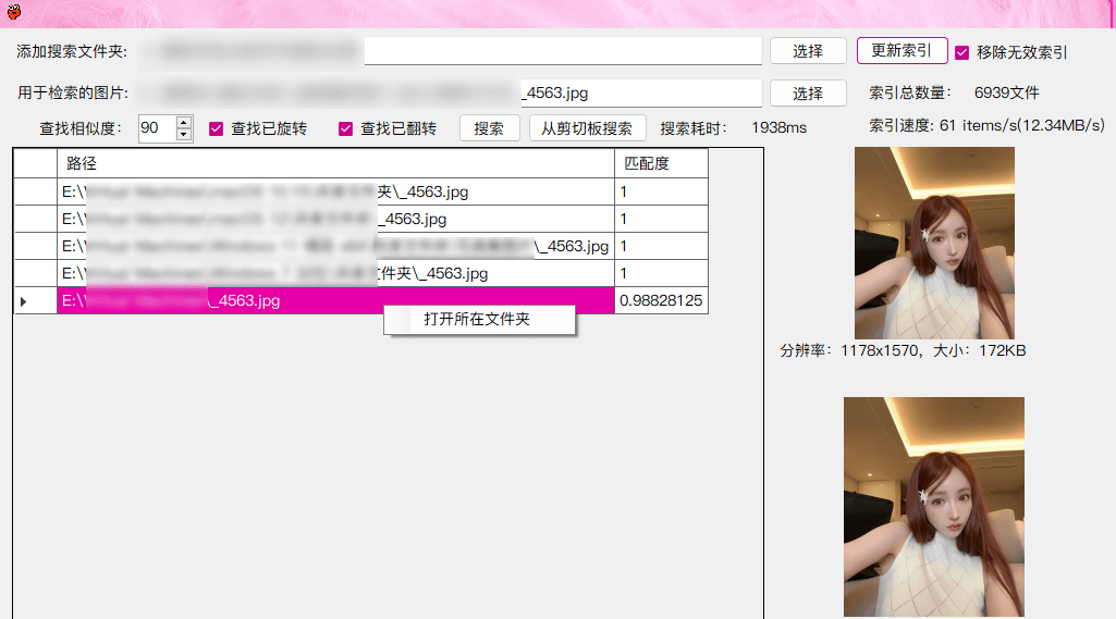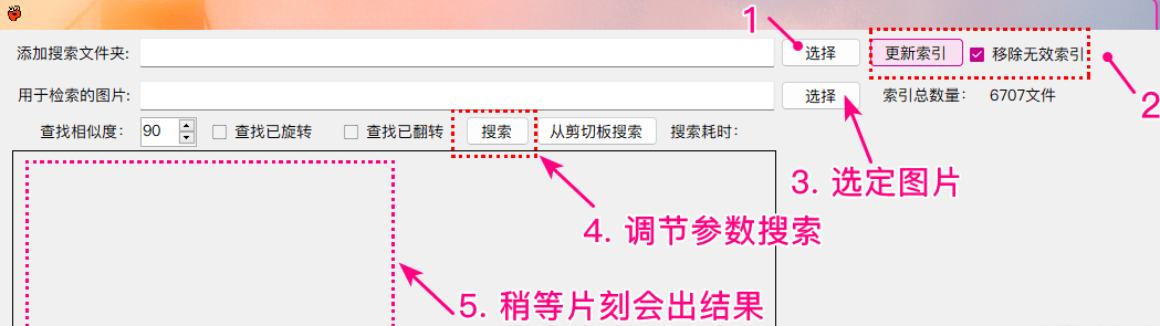 1、进入软件之后先上传用于检索的图片以及指定文件夹。