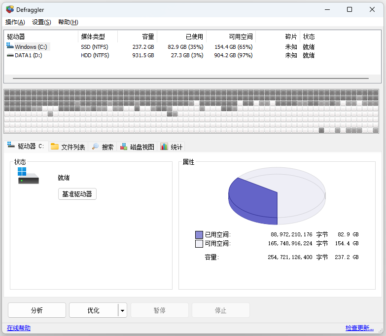 1、启动后选择需整理分区,点击分析查看碎片情况,确认后执行碎片整理优化。