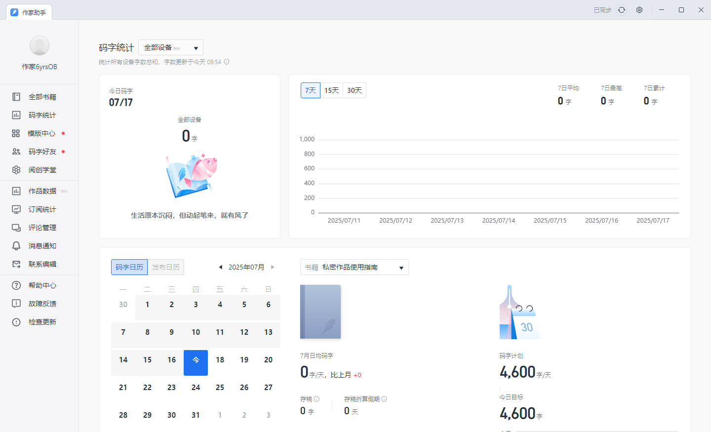 创作记录可视化,字数统计写作时长曲线展示,进度清晰自我激励更从容。