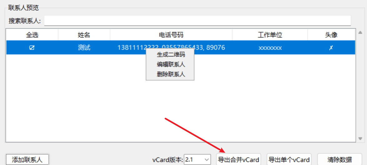 所有添加转换的文件都可以在这里进行预览和操作,可以对联系人的内容进行设置。