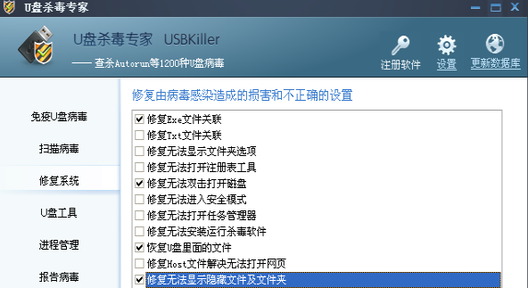 3、报告病毒:软件能将各种各样的病毒都扫描出来,目前病毒库有1200多种病毒数据。