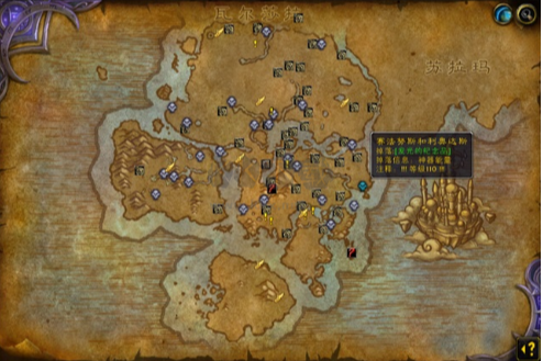 将鼠标悬停在地图标记上会显示详细提示信息,如怪物等级掉落物品和刷新时间等。
