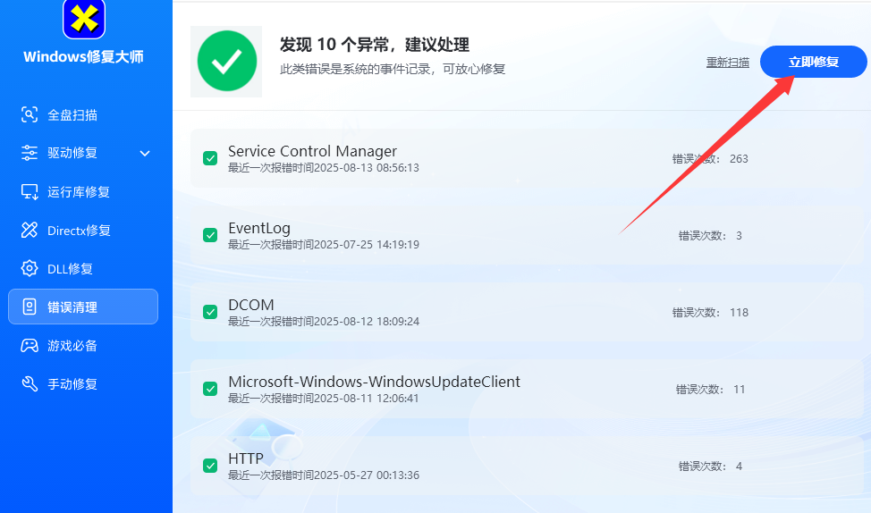 软件当中可以对当前的电脑系统进行扫描,使得能够检测出电脑当中缺失的文件。
