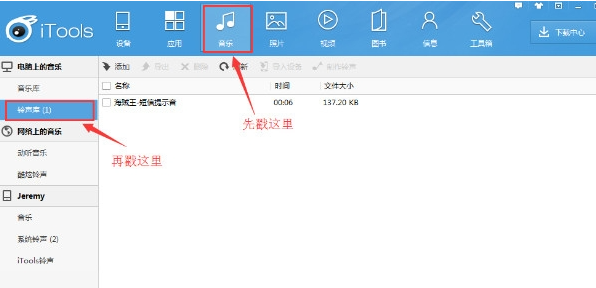 3、将其导入到铃声库中,随后选中将其导入设备即可。