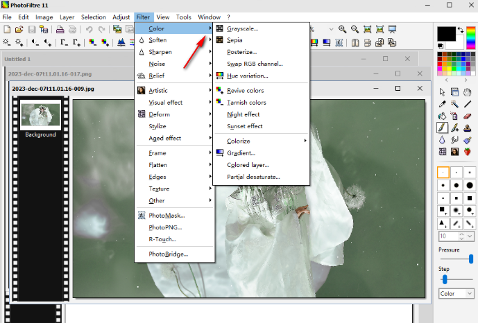photofiltre是一款功能非常丰富的图像处理工具,这款软件当中提供了非常丰富的图片编辑功能,用户可以上传很多不同格式的图片到软件当中,然后借助其中的修图功能来实现不同图片的修饰效果。