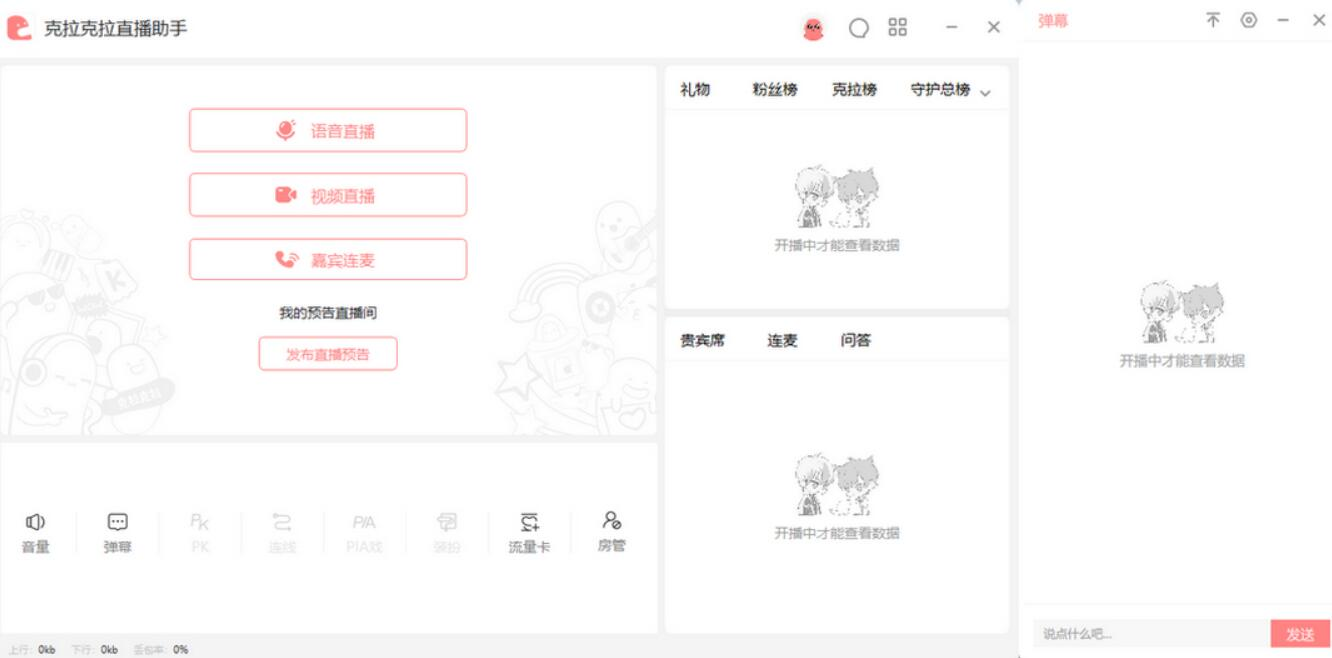 克拉克拉直播助手电脑版是一款功能强大的直播辅助工具,提供直播间设置、弹幕管理、礼物查看和虚拟直播等多种实用功能,支持高清背景音乐和多人语音连麦,让主播能够轻松与观众互动,非常适合主播使用。